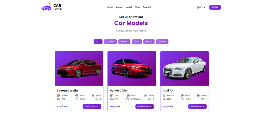 - Model-wise Car Search: Filter options to search for specific car models.